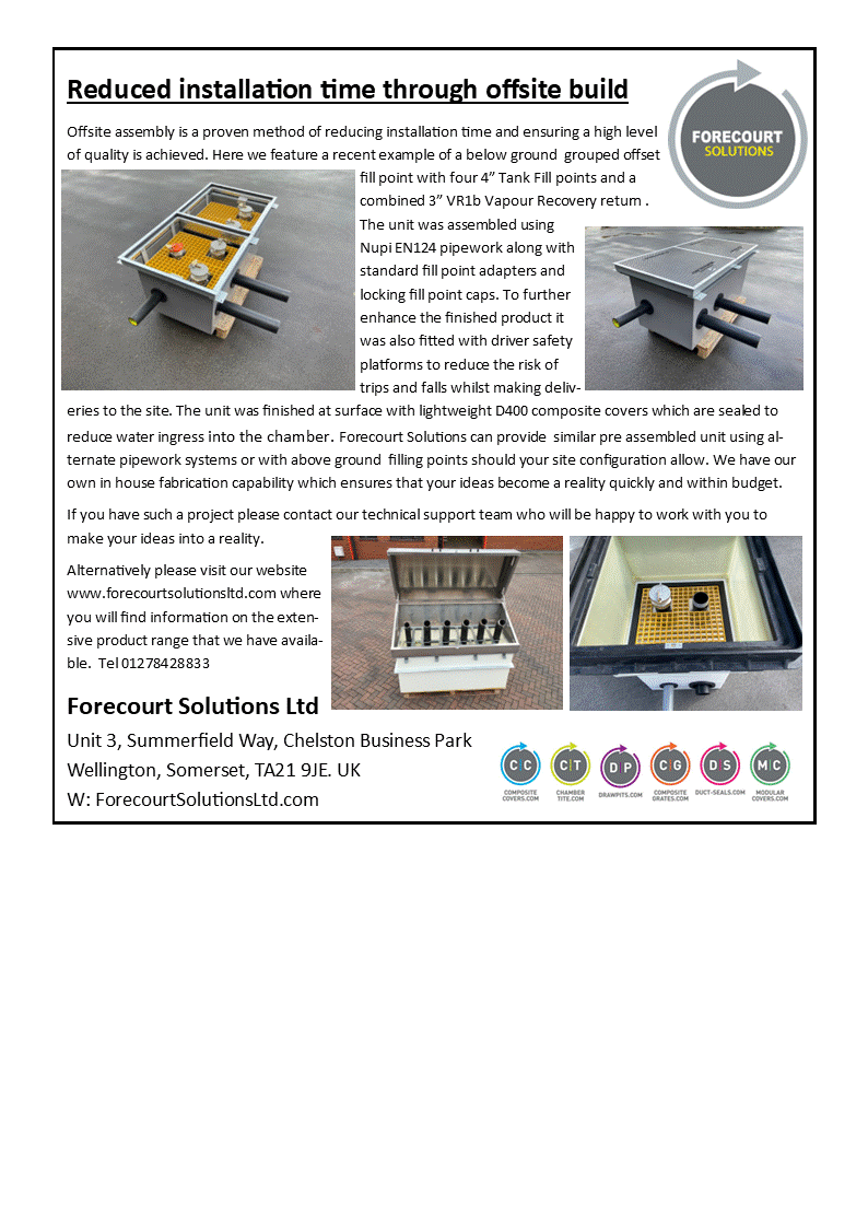 Forecourt Solutions has for nearly 20 years been a leading manufacturer of lightweight composite manhole covers and containment products for the petroleum & construction industries. We have sold our products internationally through our distributor network and have sold to more than 90 countries worldwide. Our products use market leading design and upto the minute technology to product cost effective solutions to match your development needs.